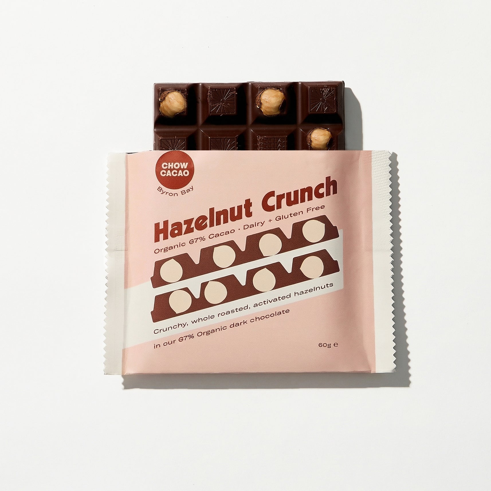 Roasted, activated hazelnuts meet rich, organic cacao in this indulgent and crunchy bar. Nutty, chocolatey joy with a satisfying crunch in every bite.